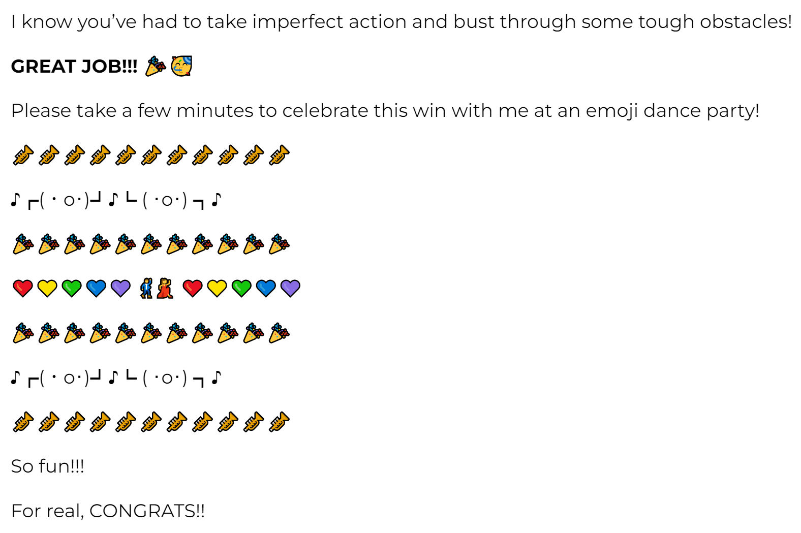 So congratulate them, celebrate that with them and be excited about it! In this email, I have a ton of emojis because I just really want people to feel the energy that I am truly excited for them.